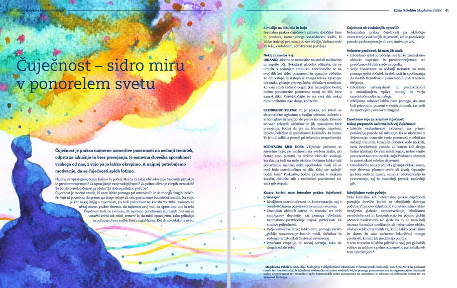 Vprašajmo se, čemu želimo to početi. Morda za lažje obvladovanje časovnih pritiskov in preobremenjenosti? Za upravljanje svoje vzkipljivosti? Za polno uživanje v lepih trenutkih? Za boljšo osredotočenost pri delu? Za dobro psihično počutje?