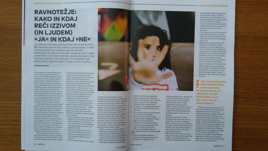 Sposobnost reči »Ne« je bistveni del veščine asertivnosti. Biti asertiven pomeni biti odločen, samozavesten in imeti samozaupanje brez izražanja agresije. Pomeni spoštovanje do sebe in do drugih, zavedanje, da so enako pomembne naše lastne vrednote, pravice, potrebe in želje kot tiste od ljudi, ki nas obkrožajo. Je ravnotežje med pasivnostjo in agresivnostjo. In tega se lahko naučimo.